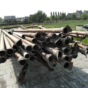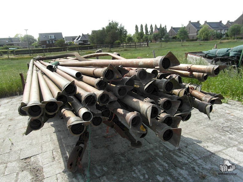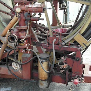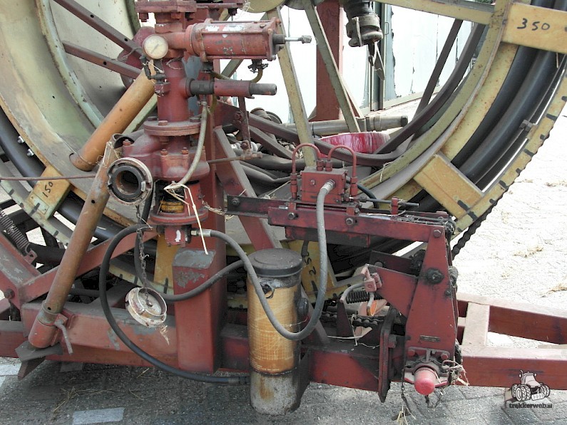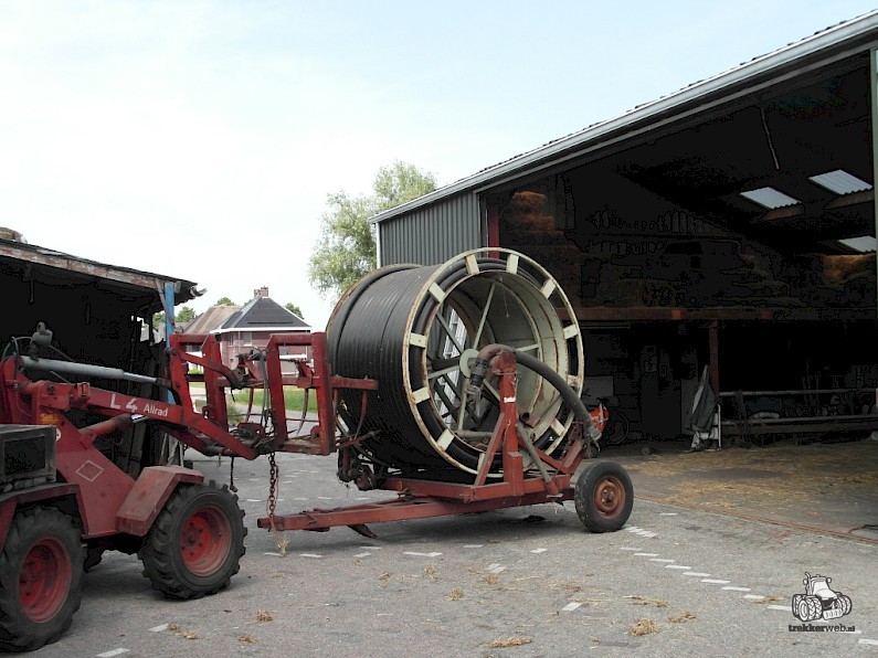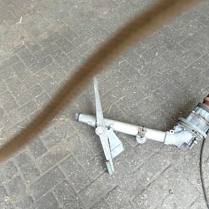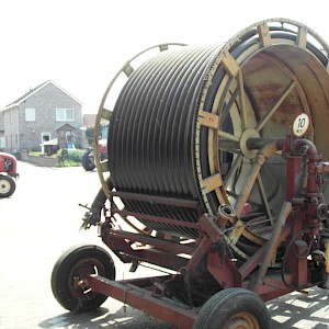 Haspel, +/- 250 m. aluminium aanvoerbuizen diameter 80 mm, aftakaspomp Bauer, 60 kuub per uur, 8 bar.