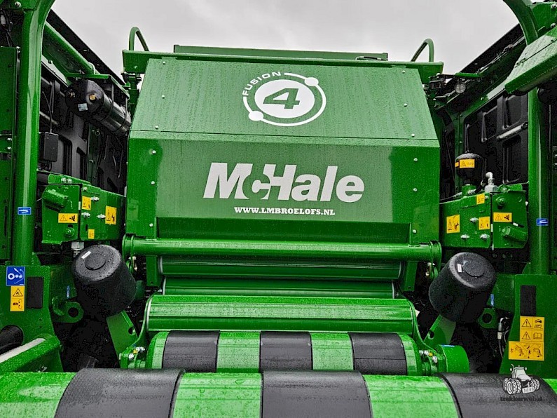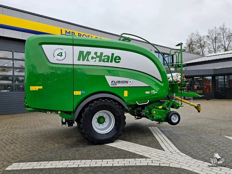 Uit voorraad leverbaar nieuwe McHale Fusion 4 Plus pers wikkelcombinatie, bouwjaar 2026, profi flow invoer, curvebaanloze pick-up, kantelaar, 10 inch scherm, 680 banden, camera.