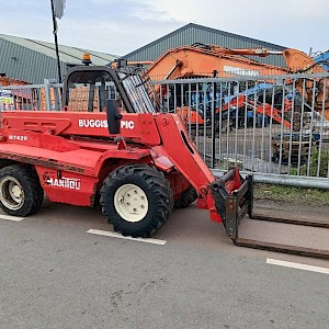 Manitou BT 420 Buggy: Met een hoogte van slechts 1,90 meter komt deze verreiker overal waar anderen stoppen. Perfect voor binnenwerk en locaties met een laag plafond. Met 4x4 aandrijving en uitzonderlijke wendbaarheid.