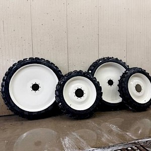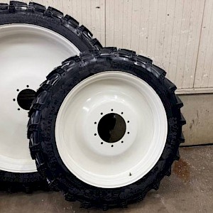 Set nieuwe 270/95 R54 + 270/95 R38 BKT banden op vaste velgen.