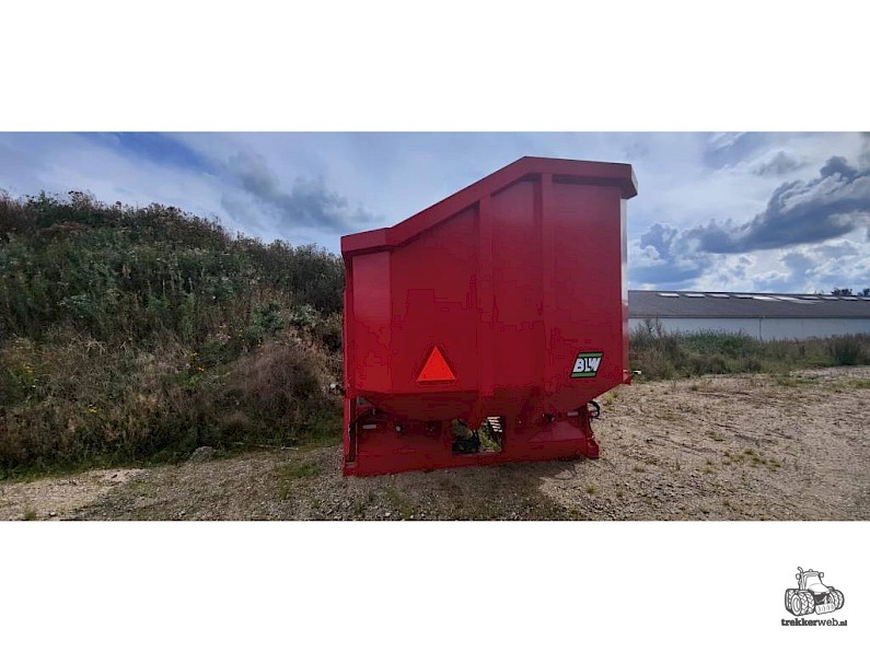 Vervaet bietenoverlaadbak (losse opbouw) | inhoud 28 m3 | rechts lossende afvoer met ketting | kiepbak lost op de afvoerband | passend op een 5-wiel chassis (was een wisselsysteem met een mesttank) | gebruikt de aandrijving van de mestpomp en hefinrichting functies | exclusief montage | diverse chassis beschikbaar | foto met bak, toen was de machine nieuw