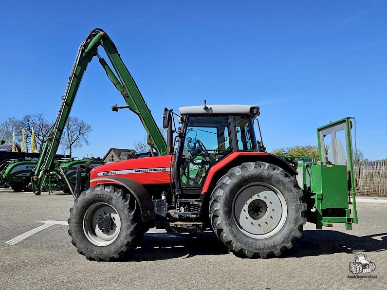 Massey Ferguson 6290 met maaiarm, Bouwjaar 2000, Draaiuren 16.837, 135pk, extra steunwiel aan maaiarm, werkverlichting, Gereedschapskist, Airco, Radio, Michelin 540/65R28 voorbanden, BKT 650/65R38 achterbanden..