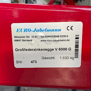 Euro-Jabelmann V-6000G Bouwjaar: 2025 Werkbreedte: 6 meter Hydraulisch opklapbaar 37 veertanden Verkruimelrol: 55cm diameter Verlichting Uit voorraad leverbaar! Inruil en transport mogelijk!