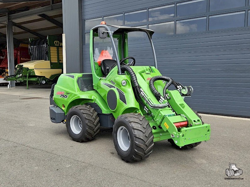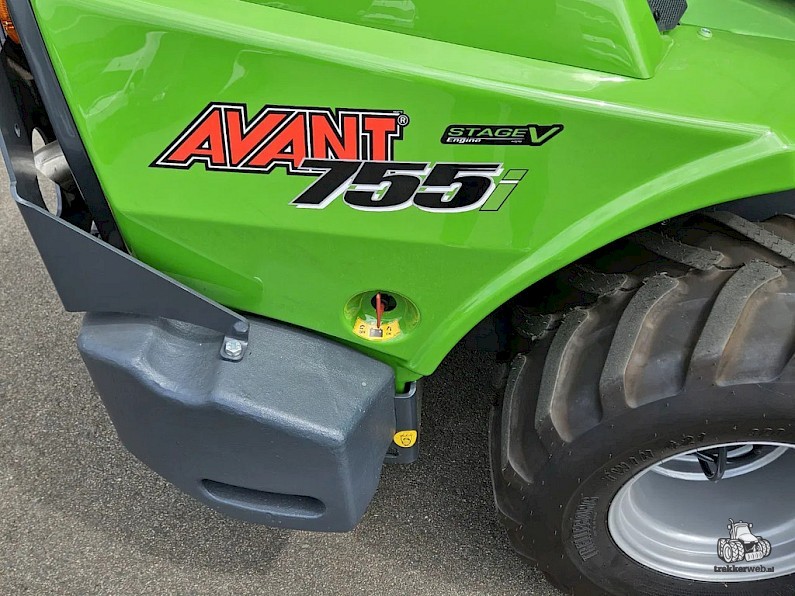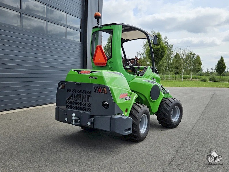Nieuwe Avant 755i Rental mini-shovel, bouwjaar 2024, Hefvermogen 1400 kg, Motorvermogen 56 pk diesel, Hefhoogte 3.1 m, Snelheid 17 km/u, Gewicht 1970 kg, Motor: Kohler KDI 1903 TCR, Rental pakket: Wegverlichtingskit, Hydr. snelwisselsysteem, Heavy duty-covers, Beschermrek achteraan, Zijgewichten 2 x 90kg, 320/60-12 banden (129,5 breed).
