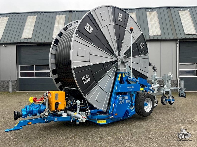 Deze haspel is voorzien van een hydraulische oprolsysteem, er is dus geen turbine van toepassing, hierdoor heb je een grotere capaciteit en een hogere druk op het sproeikanon, Ook is het hierdoor mogelijk om tot wel 200m/uur op te rollen.