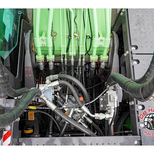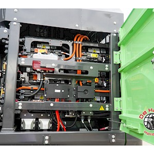 CATL-accu 525,1 kWh, Kawasaki hydraulisch systeem, sloop/sorteer functie, hydraulische leidingen voor snelkoppeling,(ROPS)cabine met airconditioning en verwarming, proportionele joysticks links en rechts, verwarmde en gekoeld luchtgeveerde stoel,centrale smering, achter- en rechtscamera's, spoorbreedte 2590 mm, 900mm rupsplaten.