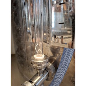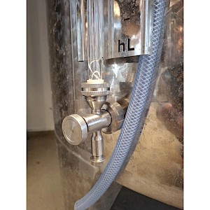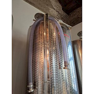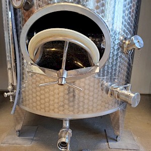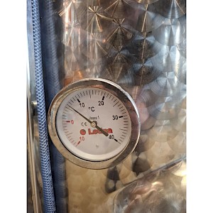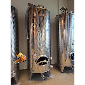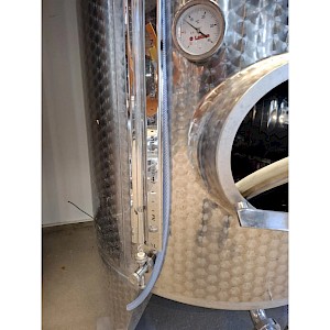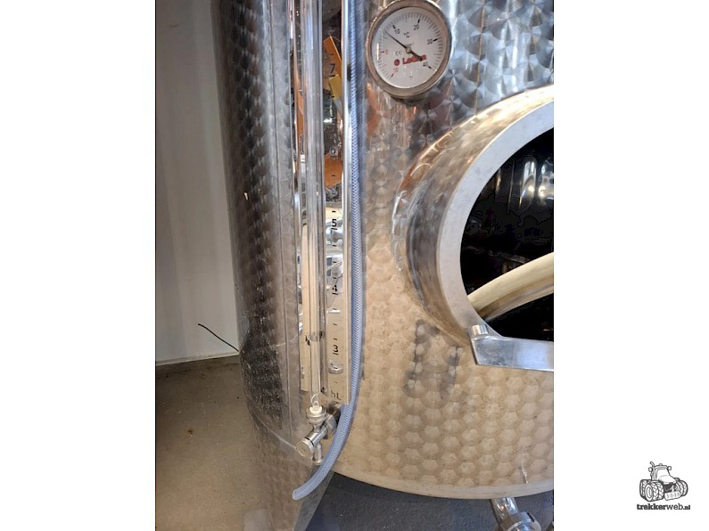 Inhoud circa 2450L, met roerder inrichting zonder de verwisselbare elektromotor, mangat boven op tank, mangat op voorzijde, op 3 stelbare poten, temperatuur meter,2x aftapkraan, peilbuis.