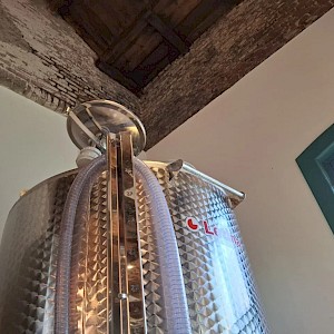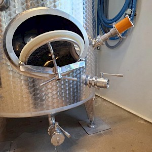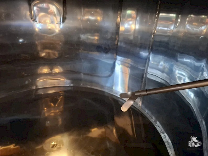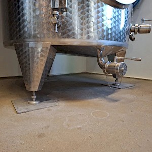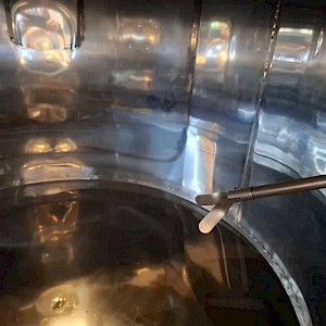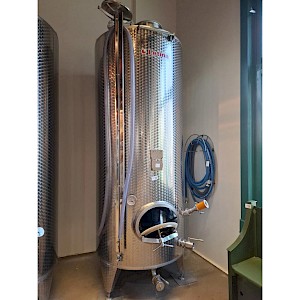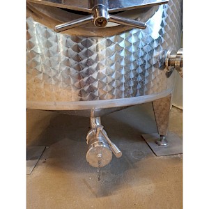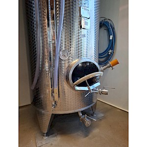 Inhoud circa 2450L, met roerinrichting zonder de verwisselbare elektromotor, mangat boven op tank, mangat op voorzijde, op 3 stelbare poten, 2x aftapkraan, peilbuis, glas ontbreekt