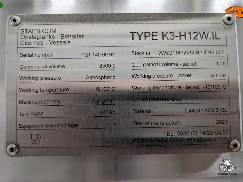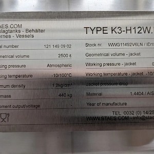 | Type | Koeltank 2500L Staes K3-H12VV.IL |