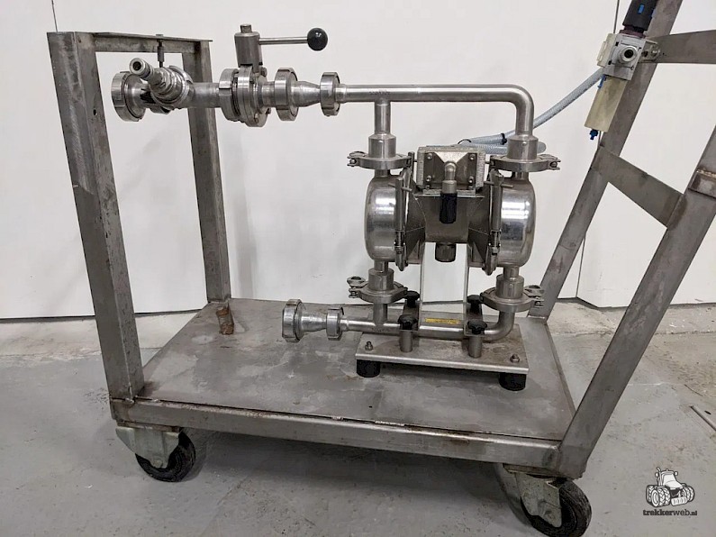 Specificaties: Luchtdruk aangedreven membraampomp, cap …., afsluiter, Sanitair, reduceer, verrijdbaar onderstel, DN40 aansluiting