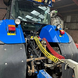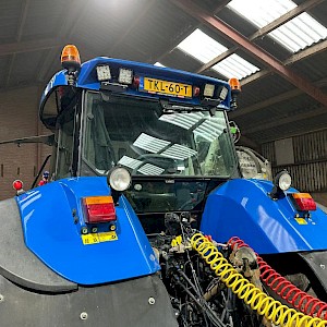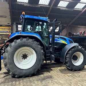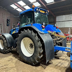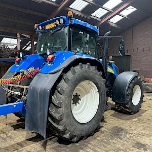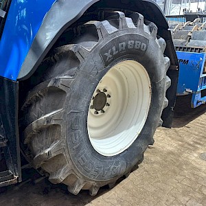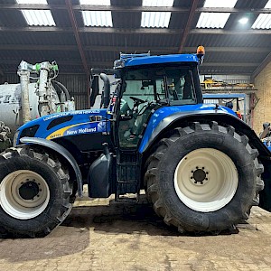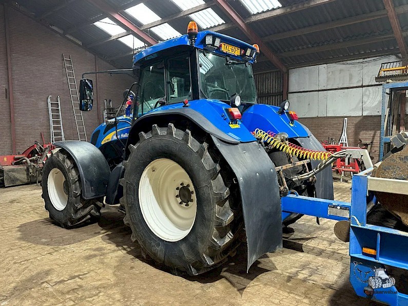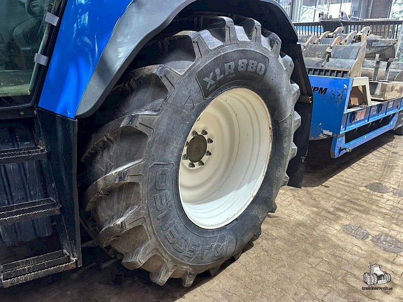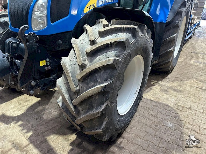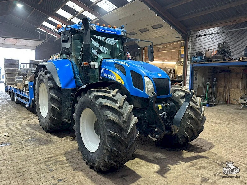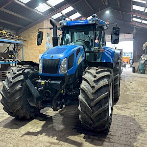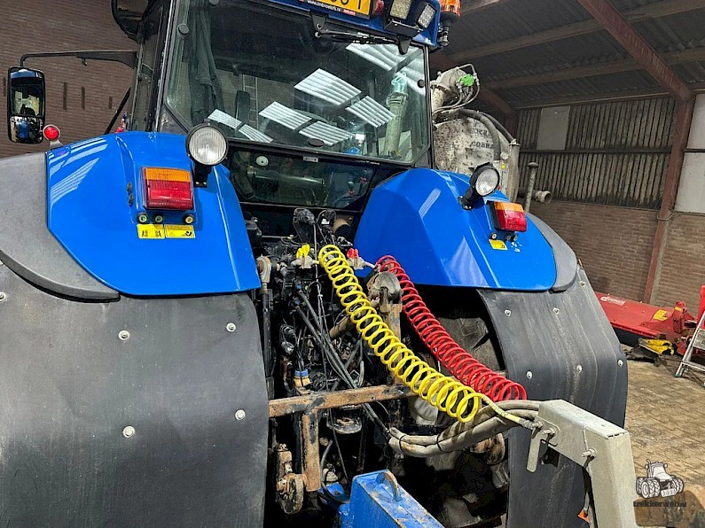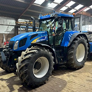 New Holland TVT195, Bouwjaar 2006, Draaiuren 8084, 195 pk, 50km/h, Fronthef, PTO, geveerde vooras, Luchthoorns, Toplampjes, Zwaailampen, LED werkverlichting, Lucht en hydraulische remmen, 4 dw ventiel, Radio, Airco, 710/70R38, 600/65R28 banden.