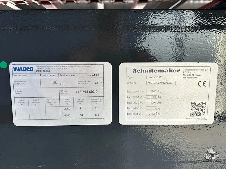 Schuitemaker Siwa 720 W silagewagen, Bouwjaar 2023, Loswalsen, mechanisch aangedreven dubbele bodemketting, hydraulische dissel, LED-wegverlichting en LED-zijverlichting, Hydraulisch onderstel gedwongen gestuurd, luchtremmen, Afdekluiken, Hydraulische steunpoot, 750-60R26.5 BKT wielen.
