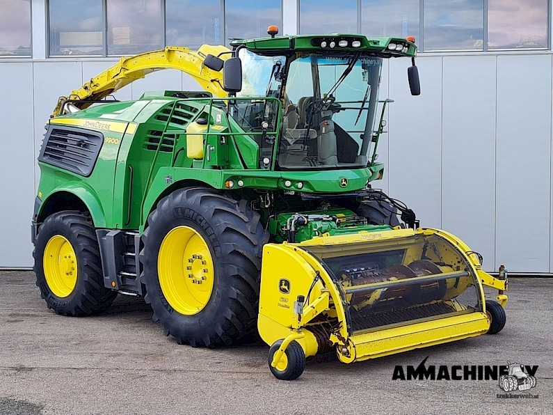 2020 John Deere 9900i including John Deere 639 Premium pick up - 4WD 40km\h - 3647 engine hours and 1561 cutterhead hours - 64 knife drum - Xstream corn cracker - automatic lubrication - stone detector - rear view camera - Led lights - duraline components