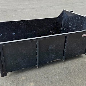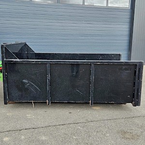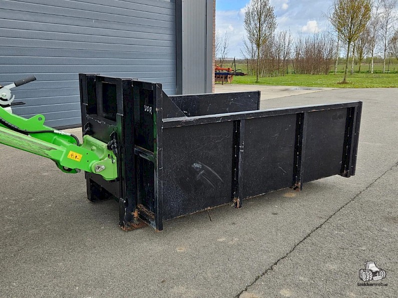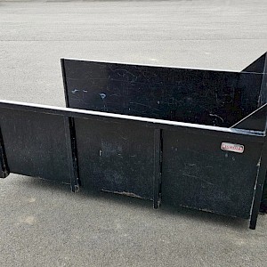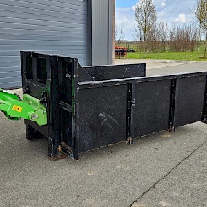 Avant mestbak/container, 130 cm breed, 210 cm lang, 80 cm hoog.