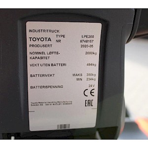 | Type | BT LPE200 meerijpalletwagen elektrische |