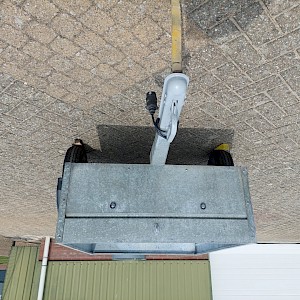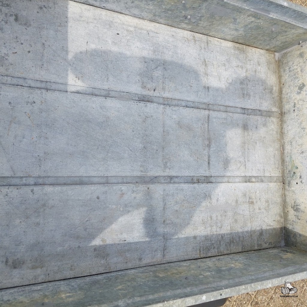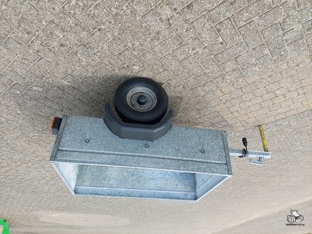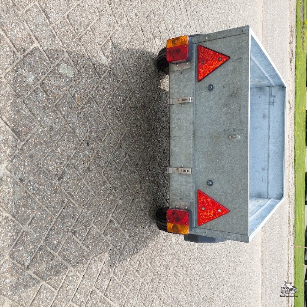 Afm. laadbak (lxbxh) 120x85x30 cm. Laadvermogen 500 kg. Geheel verzinkt, verlichting, z.g.a.n. banden.