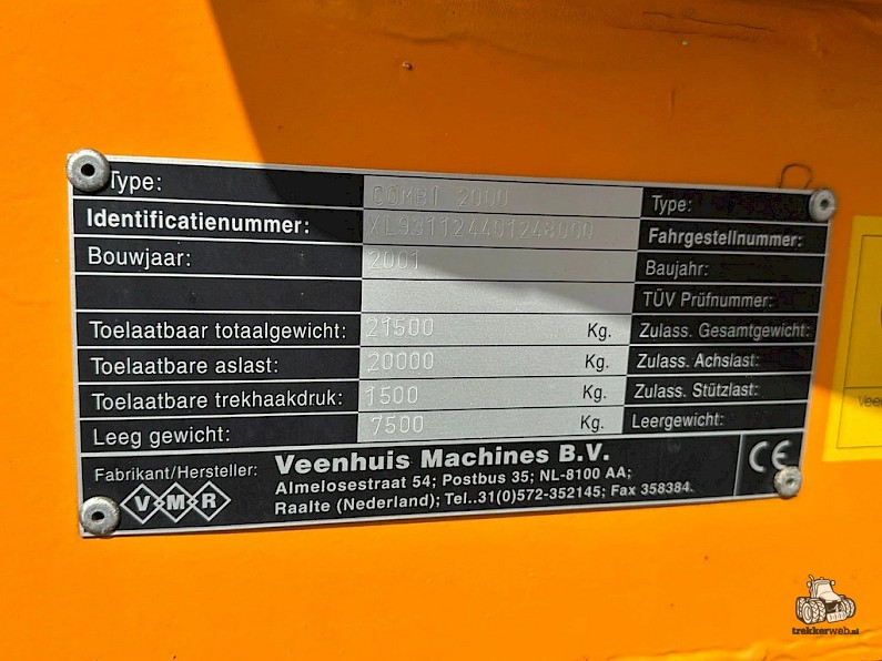 Veenhuis Combi 2000 opraapwagen, Bouwjaar: 2001, Dubbeldoelwagen, tandem-as, gedwongen gestuurd, snijrotor, bodemketting, hydraulisch bedienbaar, bedieningskast, Michelin 24 x 20.5 banden.